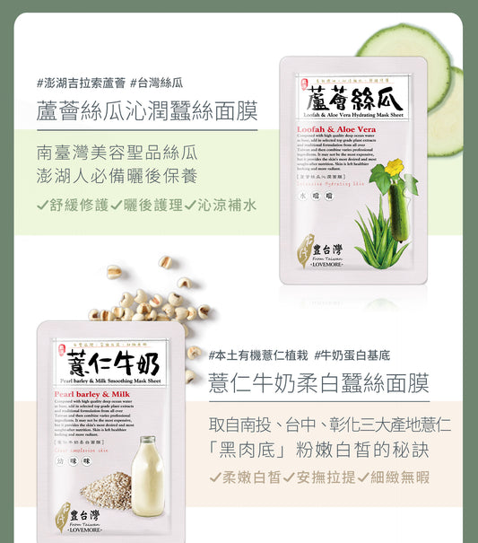 LOVEMORE 豐台灣蘆薈絲瓜沁潤蠶絲面膜 (5入) |LOVEMORE Loofah & Aloe Vera Hydrating Mask Sheet (5s)